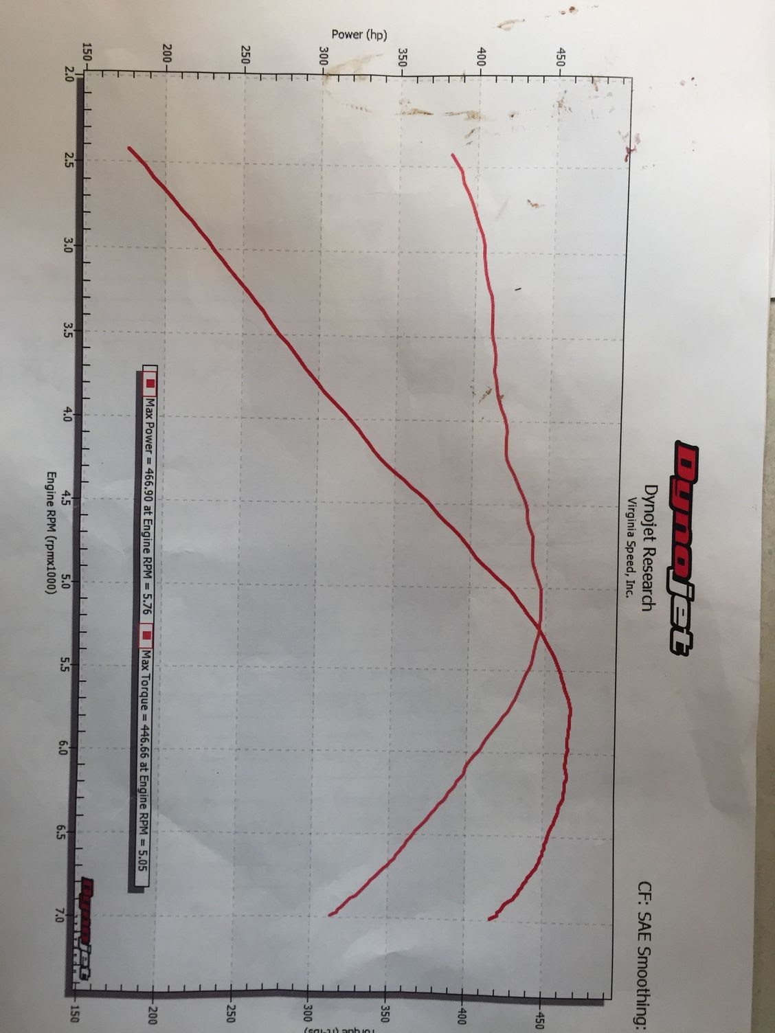 The car put out 467hp at 5,760rpm and 447tq at 5,050rpm